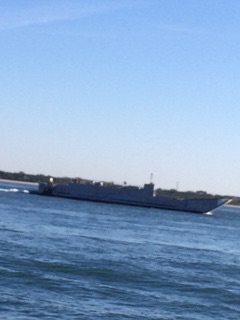 We left you in Myrtle Beach, SC on our last post. We anchored out the first night – beautiful and calm for the most part, but the tides and currents can be wild! We pulled into Charleston to a marina for a couple of days, and the current was fierce! After we got tied up, we went over to the USS Yorktown for a tour. the Yorktown was instrumental in the battle of Midway during WWII as an aircraft carrier. The Japanese Navy Sunk it after it sank a number of Japanese ships, but it was rebuilt and floated again. The submarine at the museum looked like it was moored at our Marina….it was in really bad shape, so after we got on it, we decided not to go in it!