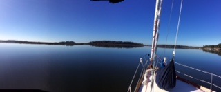 Katie back: So, we found some beautiful anchorages…quiet, desolate, and sometimes wild and disappearing! We crossed from Georgia into Florida after encountering very heavy fog. The Navy was moving a Trident submarine through the river into the sea, so we had to wait on one side of the river until they let the civilian boats go through…Hope it is headed somewhere nice for those boys and girls aboard and that they never need to use the “trident” part of the ship.