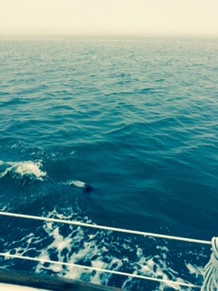 When we left St Augustine yesterday, a dense fog set in and the tide was low, so we waited it out for a couple of hours, decorated the boat for Christmas and pushed on and found an anchorage just north of Daytona. The sky had cleared, we had shrimp, salad and a glass of wine and sat upstairs watching the full moon over the water and the Christmas lights and listened to Christmas music and whoa…what was that! Porpoises and dolphins have been in and out, a few swimming aside the boat racing and a couple of what looks like very young dolphins swimming, but last night we saw and heard the blows of a manatee! What a great night!