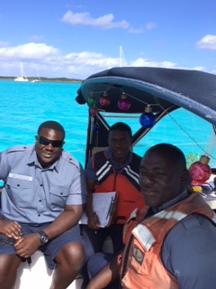 Some other interesting situations…we were boarded by the Bahamian Defence Force while we were in Blackpoint. We saw them boarding our friends boat and then we took the dinghy back to ours and they boarded us, but without the machine guns they had drawn on our friends. They were very polite, friendly and informative. There were a couple of raids in Staniel the previous week. A Texas couple and their 7 kids were there on a catamaran fleeing the US because of fraud charges. The US and Bahamian Navy captured them and then there was another boat seized? Really unusual for that kind of activity. We see very little crime outside of Nassau. Almost no one locks their boat, etc. Another funny thing is you will see an orange golf cart on Black Point with a bunch of kids in uniform…yep, it’s their school bus and today on Eleuthera, we saw a bus from Chattanooga! There are a bunch of kids from Park City Utah at the Island School for a week of ecological studies…they are about sixth grade and it is a wonderful program.